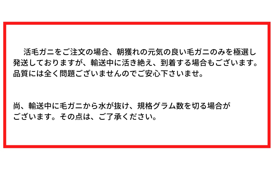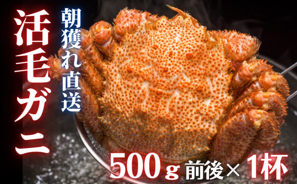 - 500gの活毛ガニが1杯でお届けします。